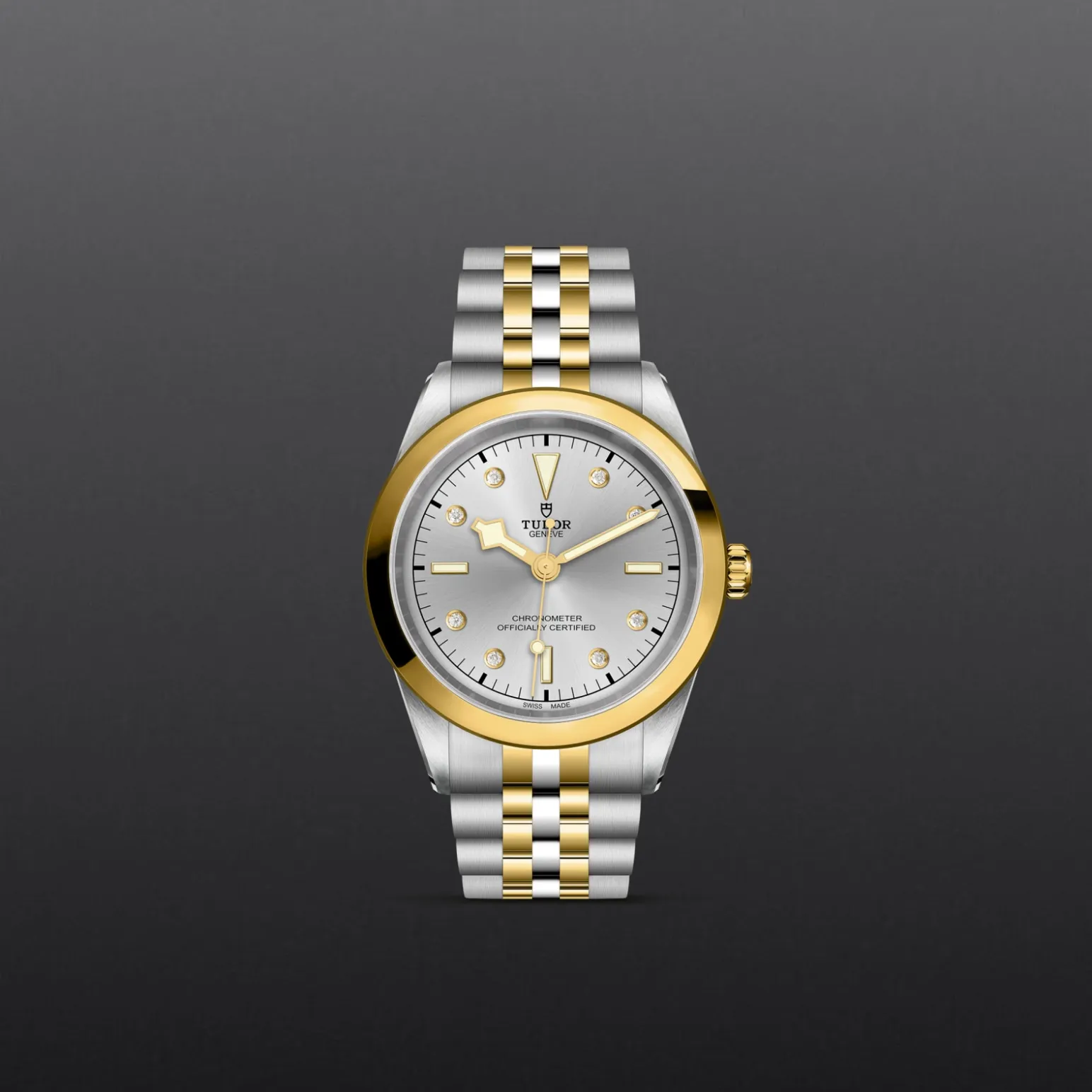 Prime maglie centrali in acciaio o in oro giallo massiccio. Le altre maglie centrali sono costituite da un’anima in acciaio rivestita da 0,2 mm di oro giallo. Chiusura pieghevole TUDOR “T‑fit” con fermaglio di sicurezza. Il logo sul fermaglio è realizzato in oro giallo massiccio